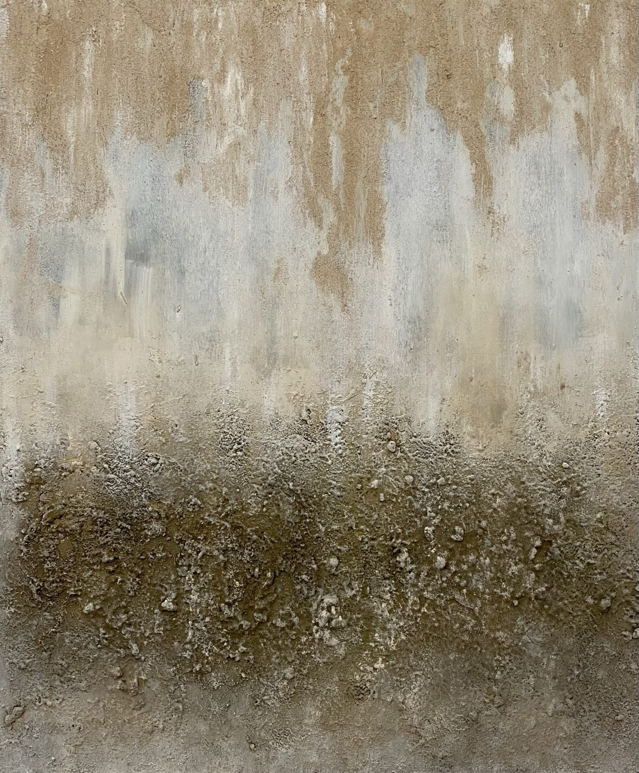 En la parte superior, los tonos claros representan un cielo exhausto, sin promesas, sin agua. Son capas arrastradas, casi como ceniza, como si el tiempo mismo hubiera pasado con una lija sobre el horizonte.
